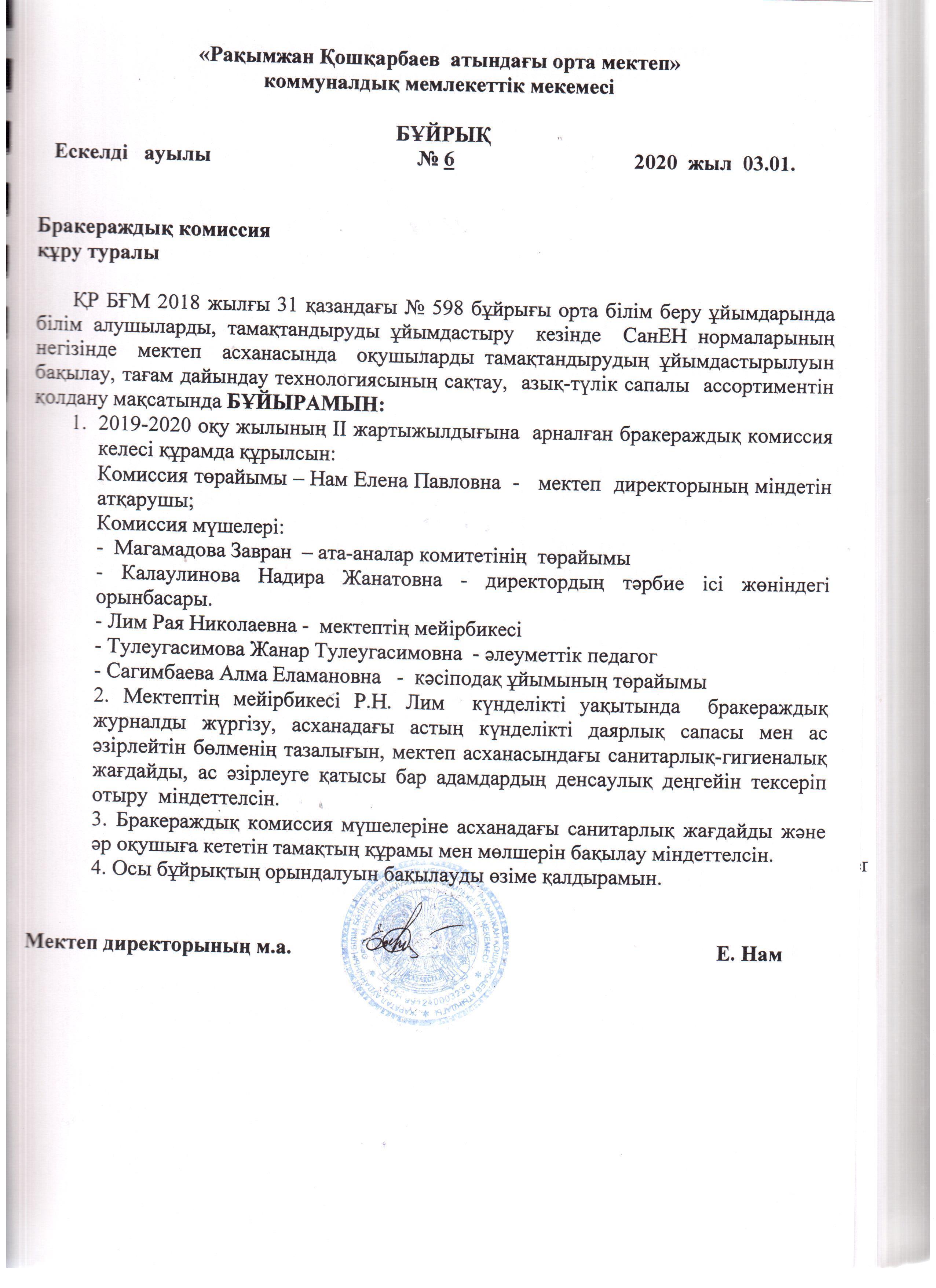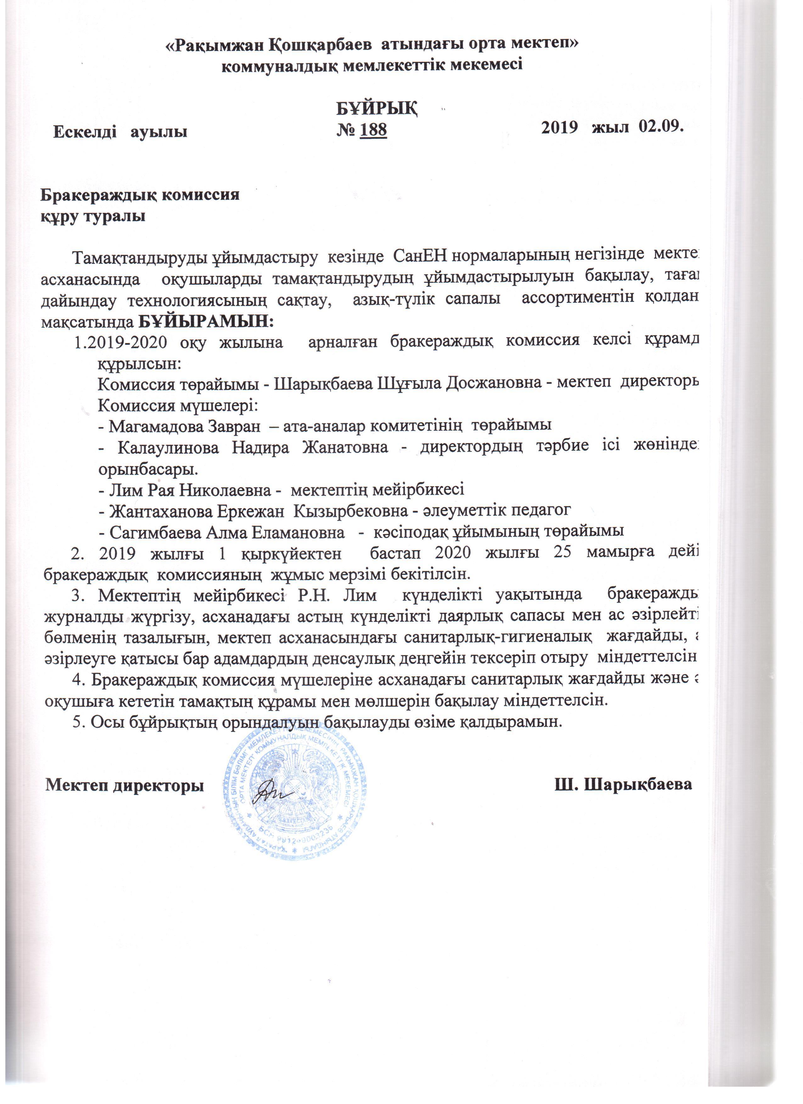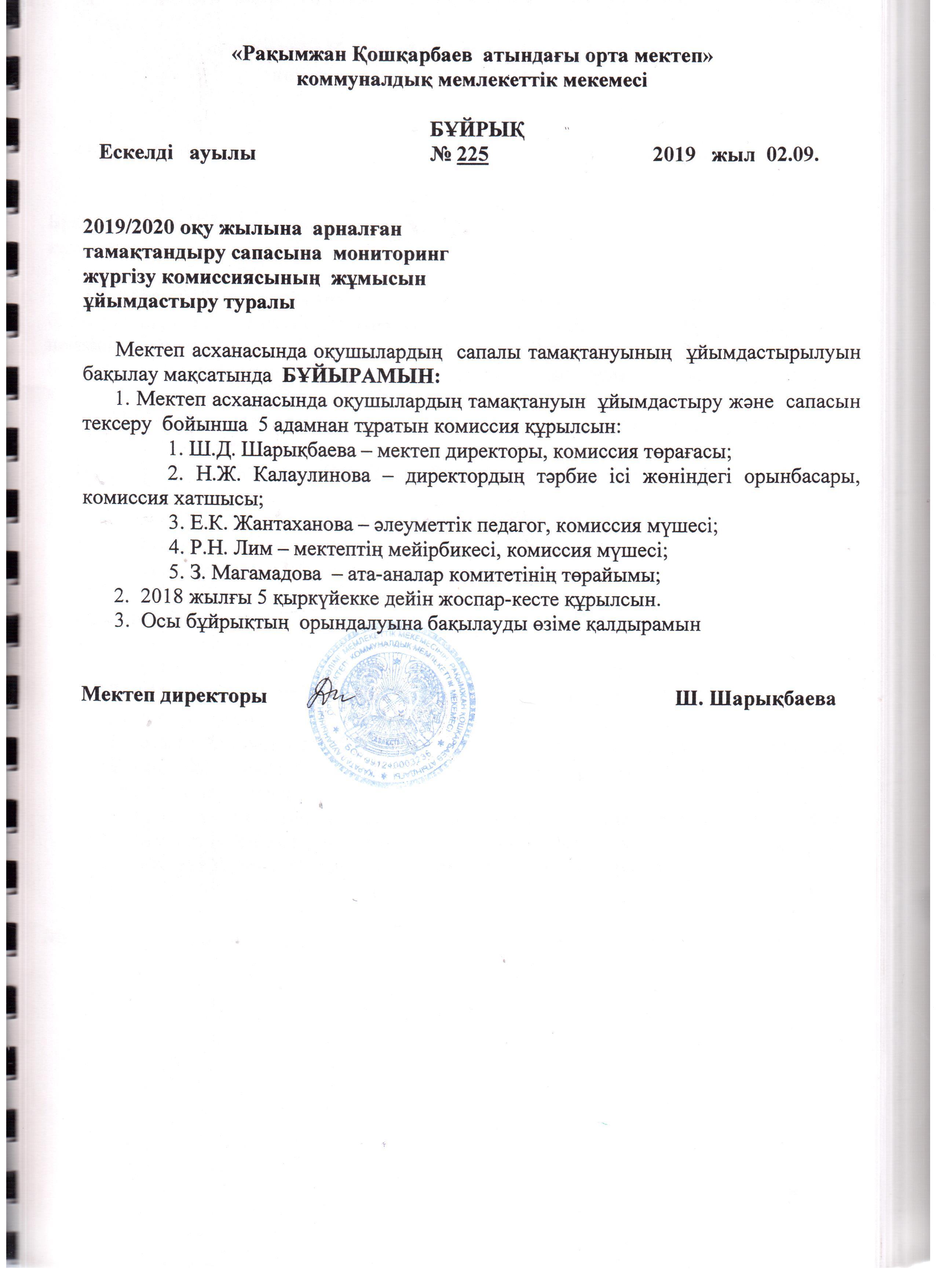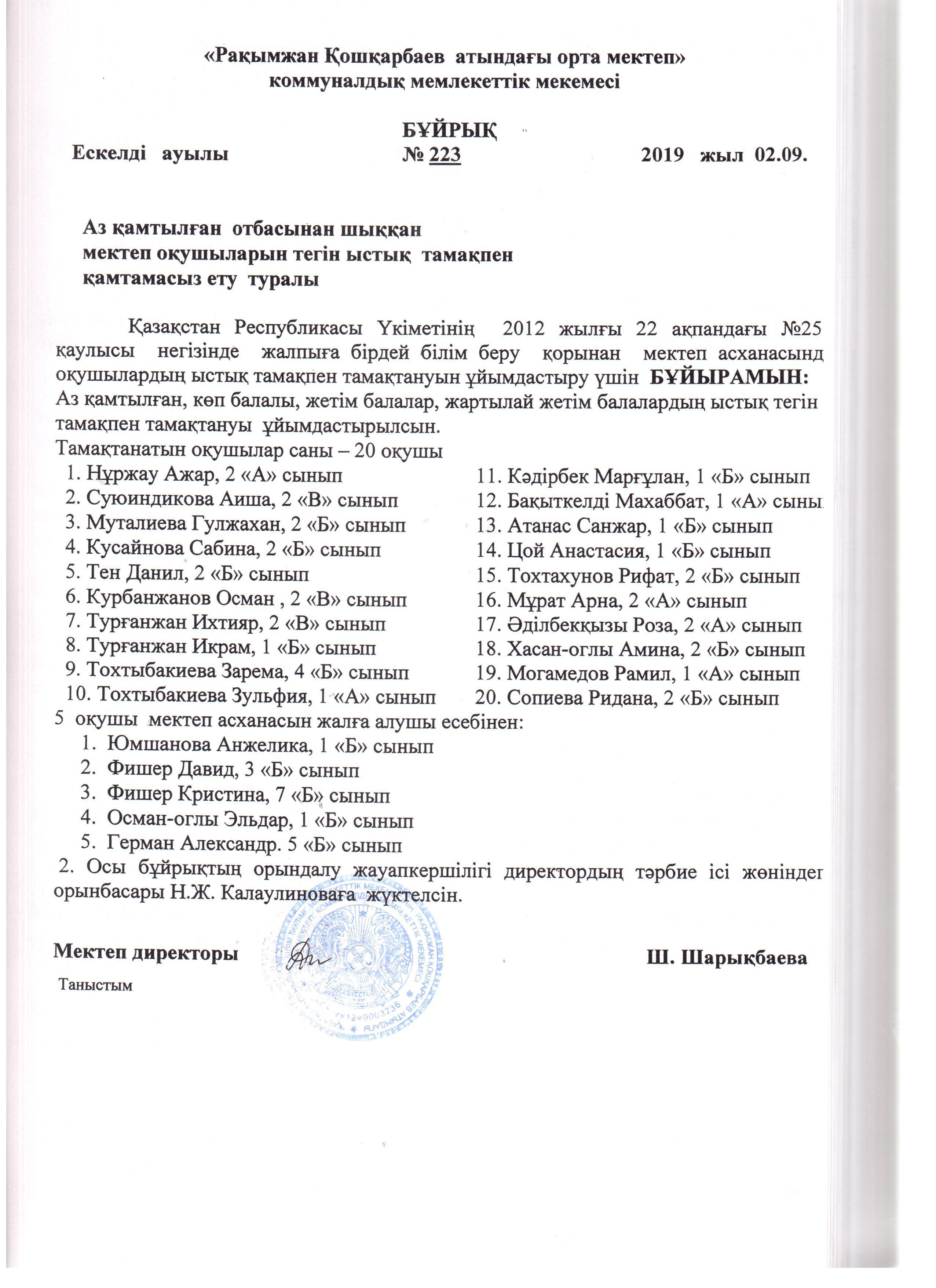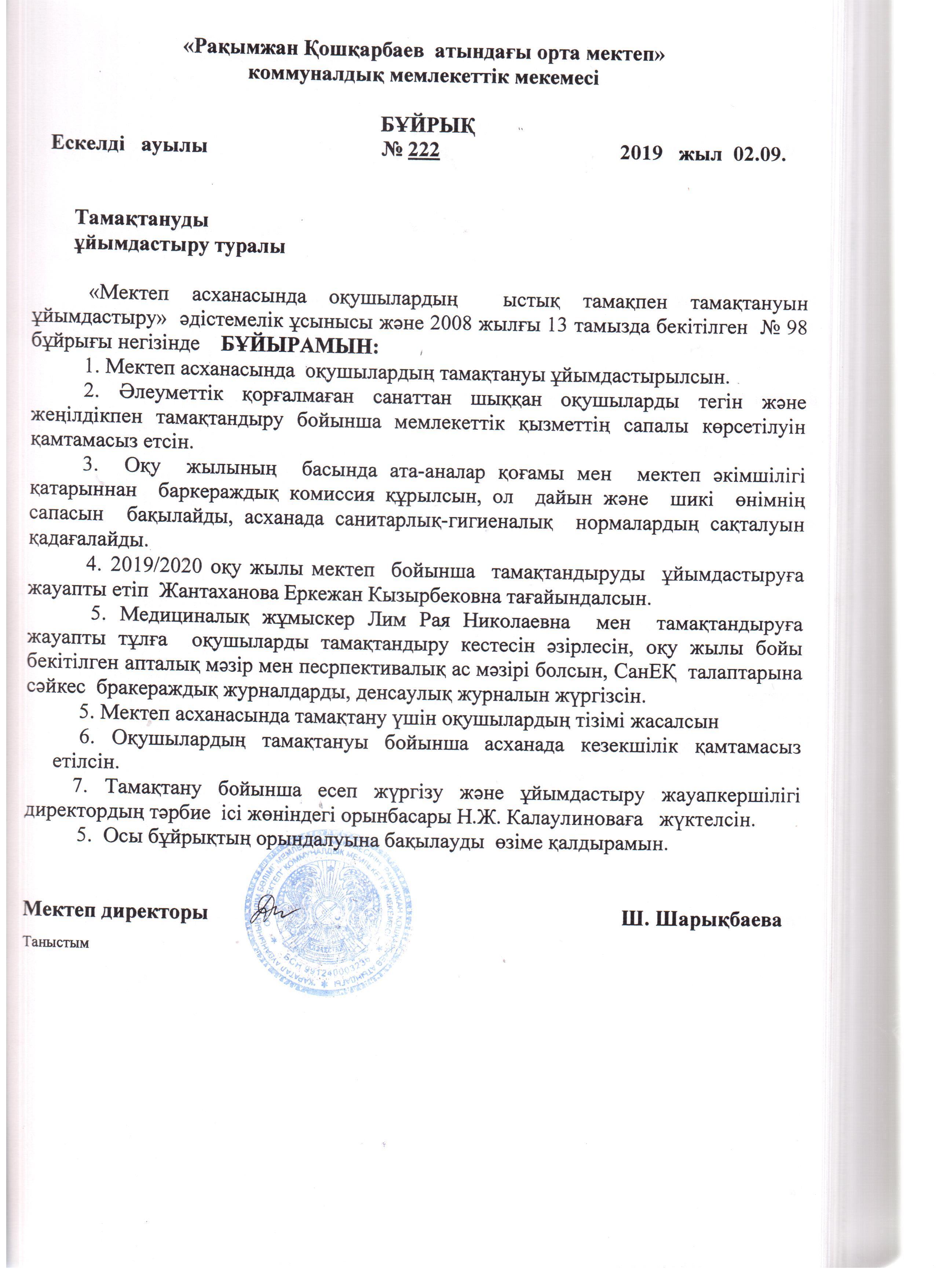 Тамақтандыру бойынша бұйрықтар » Қошқарбаев атындағы орта мектеп