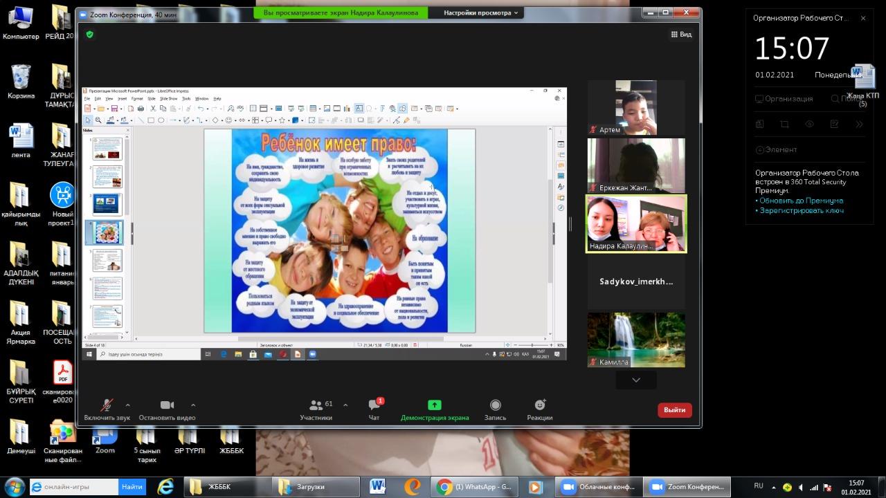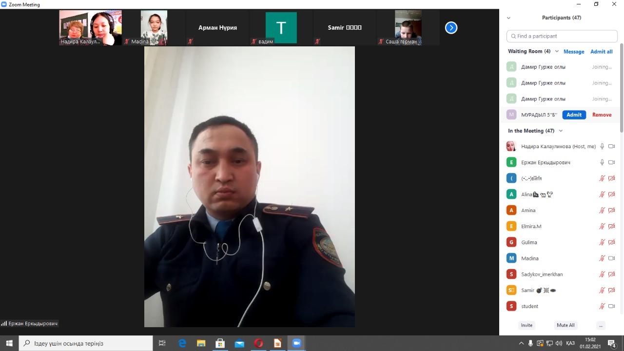 тақырыбында 5-11 сынып оқушылары арасында Қаратал АIIБЖПҚ ЮПТ-ның аға инспектры, полиция майоры Е.Құрмансеитовтың қатысуымен онлайн конференция өткізілді.