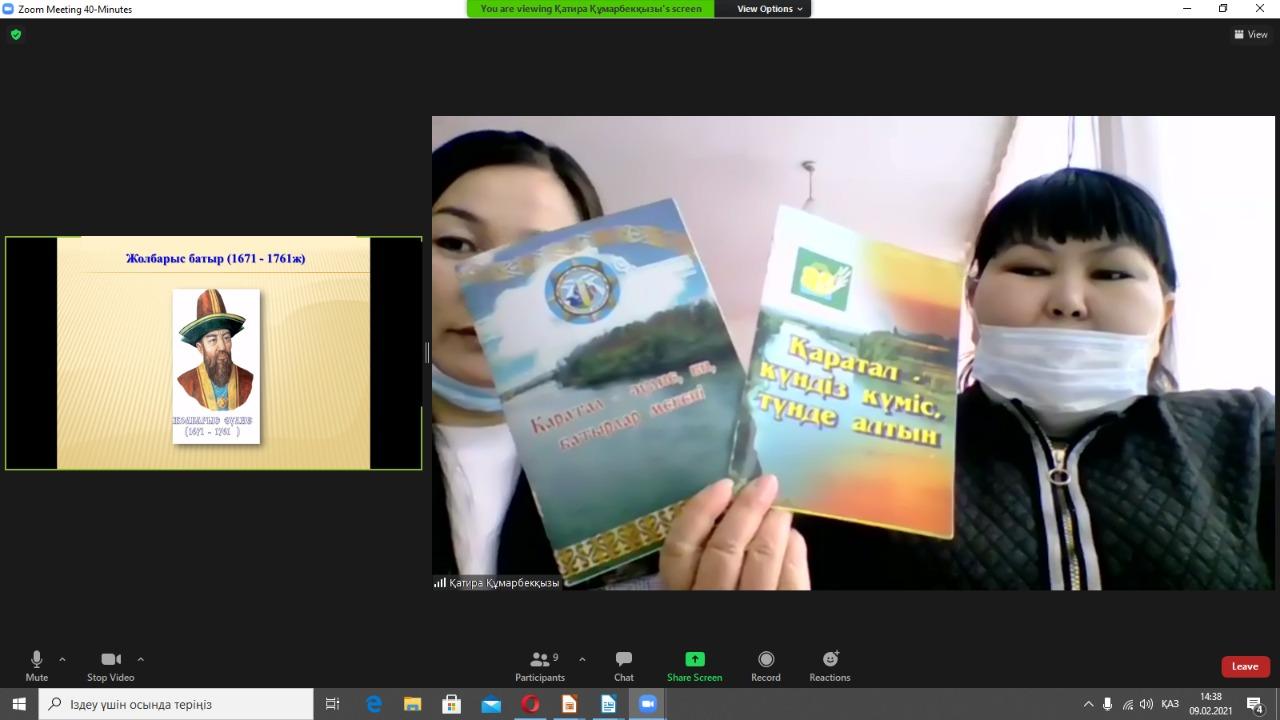 на арналған тарих пәнінің мұғалімі Қ.Құмарбекқызының және қазақ тілі мен әдебиеті пәнінің мұғалімі М.Шешенханованың ұйымдастыруымен 5-10 сынып оқушылары арасында танымдық сабақ өткізілді. Мақсаты: Жолбарыс Жылқайдарұлының өмірі, жасаған ерлігі туралы мағлұмат беру; Елін,жерін қорғайтын азамат тәрбиелеу; жастардың Отанға деген сүйіспеншілігін арттыру. Танымдық сабақ барысында қасиетті Қаратал өңіріндегі әулие-билер туралы мағлұматтар беріліп, Жолбарыс Жылқайдарұлы туралы дайындалған бейнеролик көрсетілді.