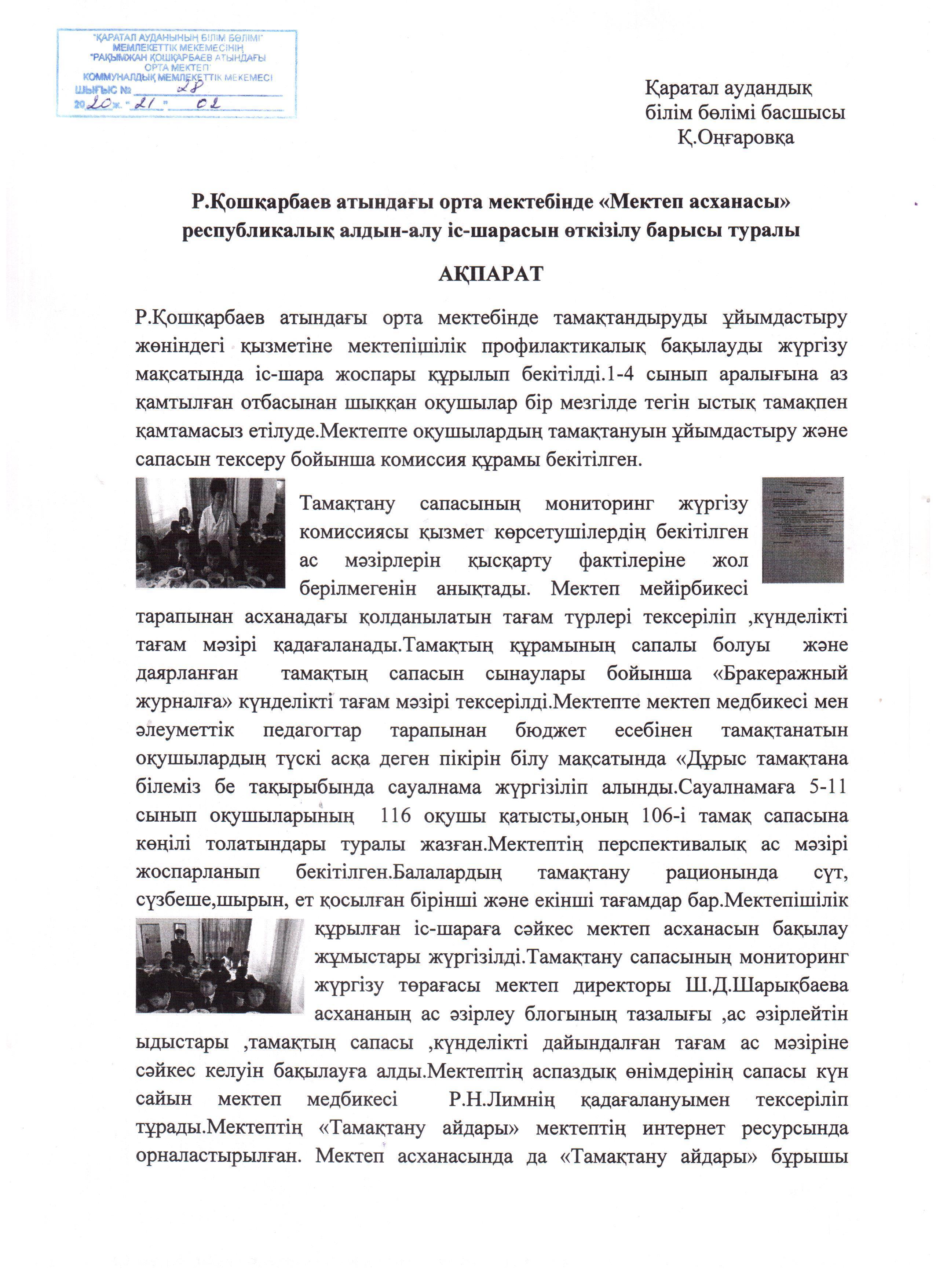Мектеп асханасы бойынша ақпарат » Қошқарбаев атындағы орта мектеп