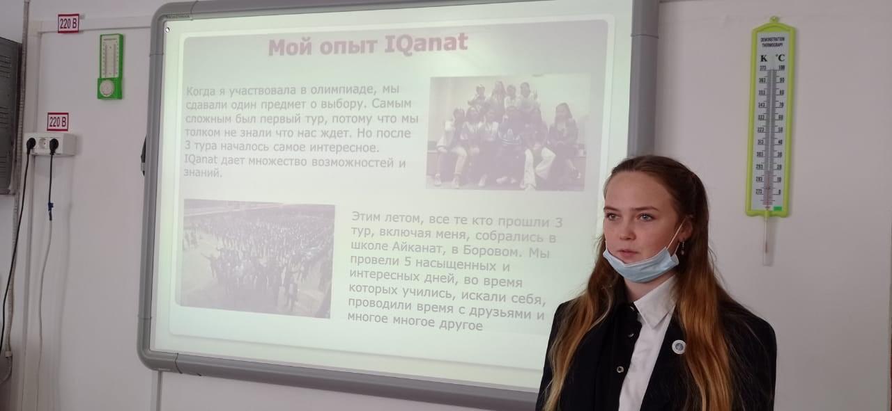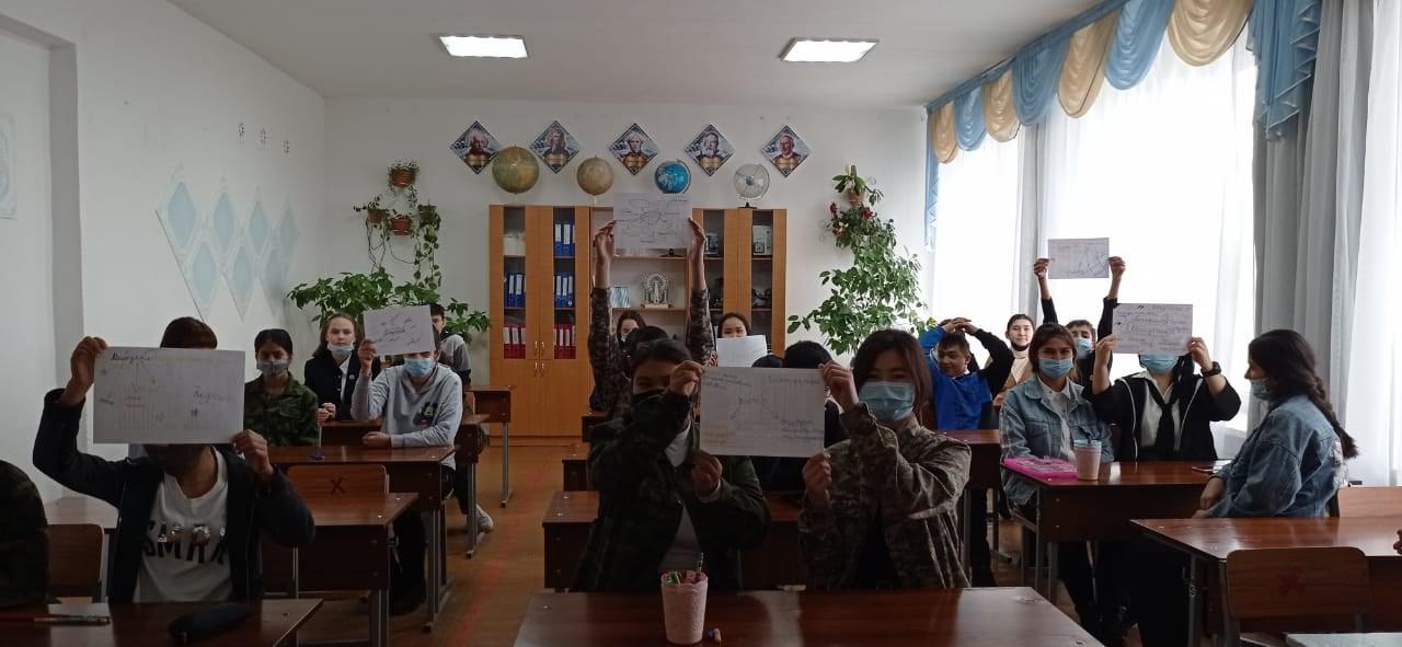 На вопрос: «Какие вы знаете организации, деятельность которых направлена на получение хорошего обучения в Казахстане?» были заслушены выступления Кочергиной Елизаветы ученицы 11б класса, которая обучается в онлайн - школе IQanat и рассказала об этой организации, про НИШ рассказала ученица 8б класса Тен Виталина, про получение Грантов на обучение за рубежом по программе «Болашақ» ознакомила ребят Эм Анастасия ученица 11б класса.