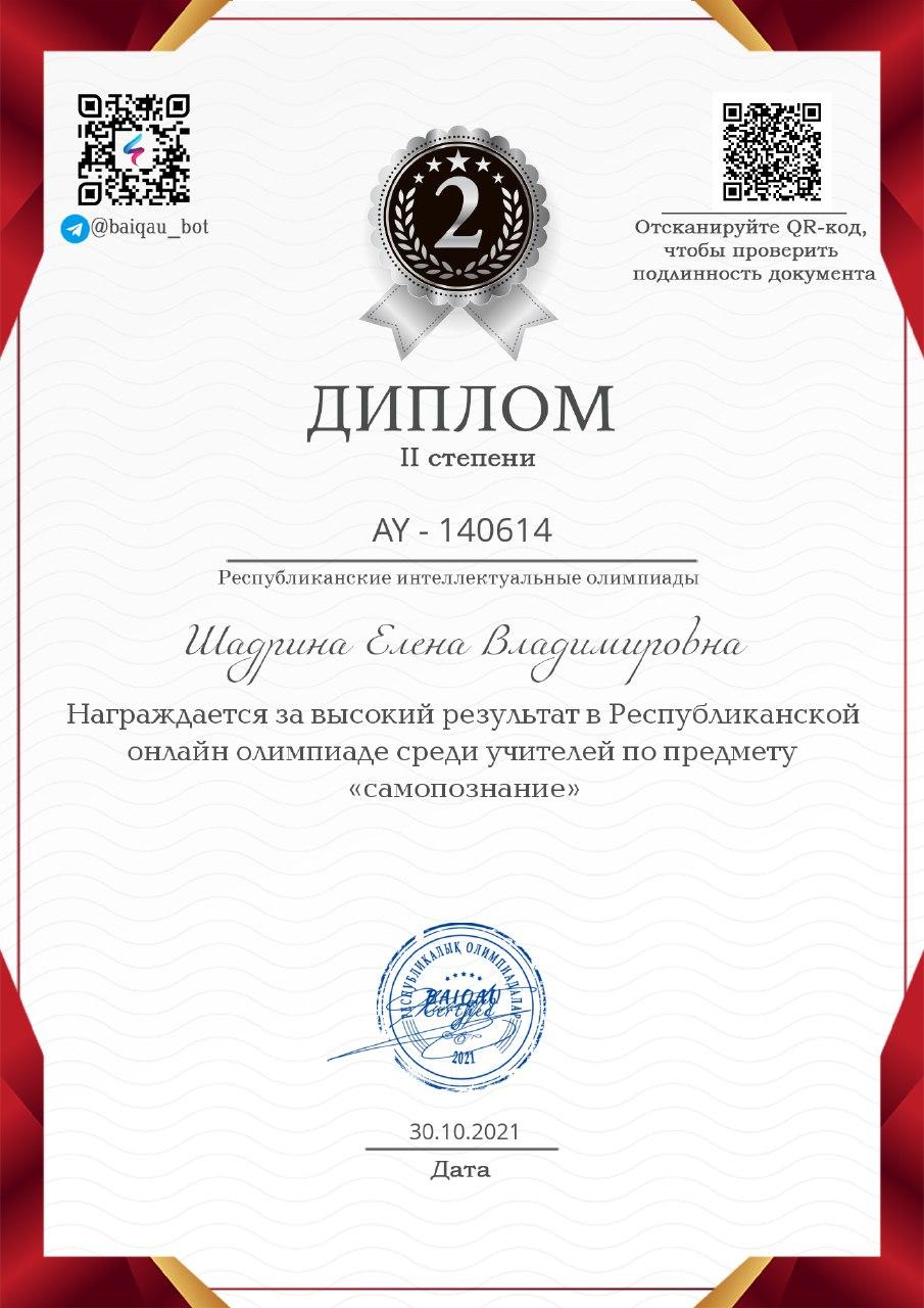 Республиканская интеллектуальная олимпиада по самопознанию Шадрина Е.В.