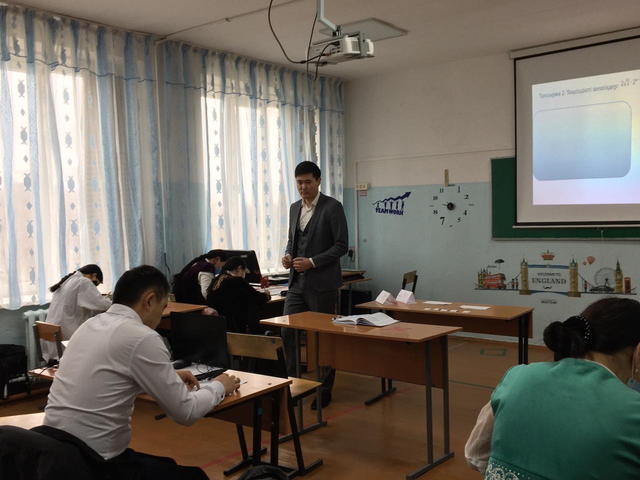Р.Қошқарбаев атындағы орта мектебінің жас мамандары ассоциациясының жұмыс жоспарына сәйкес «Пән бойынша оқушылардың мотивациясын арттыруда оқыту үшін бағалаудың маңыздылығы»тақырыбында практикалық шеберхана өткізілуде. Математика пәнінің мұғалімі Ермуханбетов Мадияр Маратұлы 11 қазақ сынып оқушыларымен алгебра сабағынан "Көрсеткіштік тенсіздіктер және олардың жүйелері" тақырыбында сабақ өткізіп, мұғалім математикалық сауаттылықты дамыту мақсатында қызықты логикалық, шығармашылық тапсырмалар ұсынып белсенділіктерін арттыра білді. Сонымен қатар оқушылар өздерін, бір- бірін тексеріп,бағалады. Сабақта өң бойы кері байланыс берілді. Сабақ әдістемелік тұрғыда дұрыс құрастырылған, қолданылған әдіс- тәсілдер, ұсынылған тапсырма, сұрақтар мақсатқа жетуде тиімді болды.