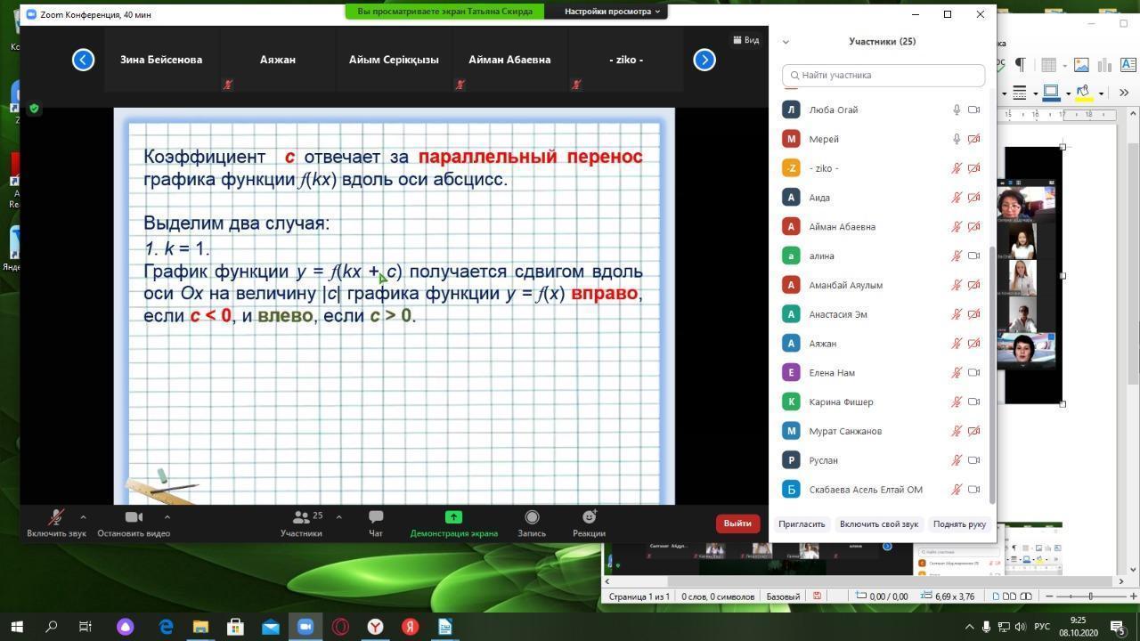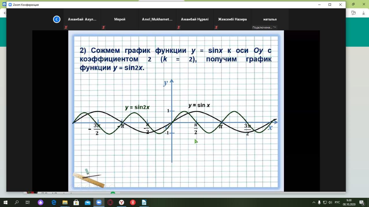Математика пәнінің мұғалімі Скирда Т.И. 10 «б» сынып оқушыларымен алгебрадан «Построение графиков тригонометрических функций с помощью преобразований» тақырыбында ашық сабақ өткізді.