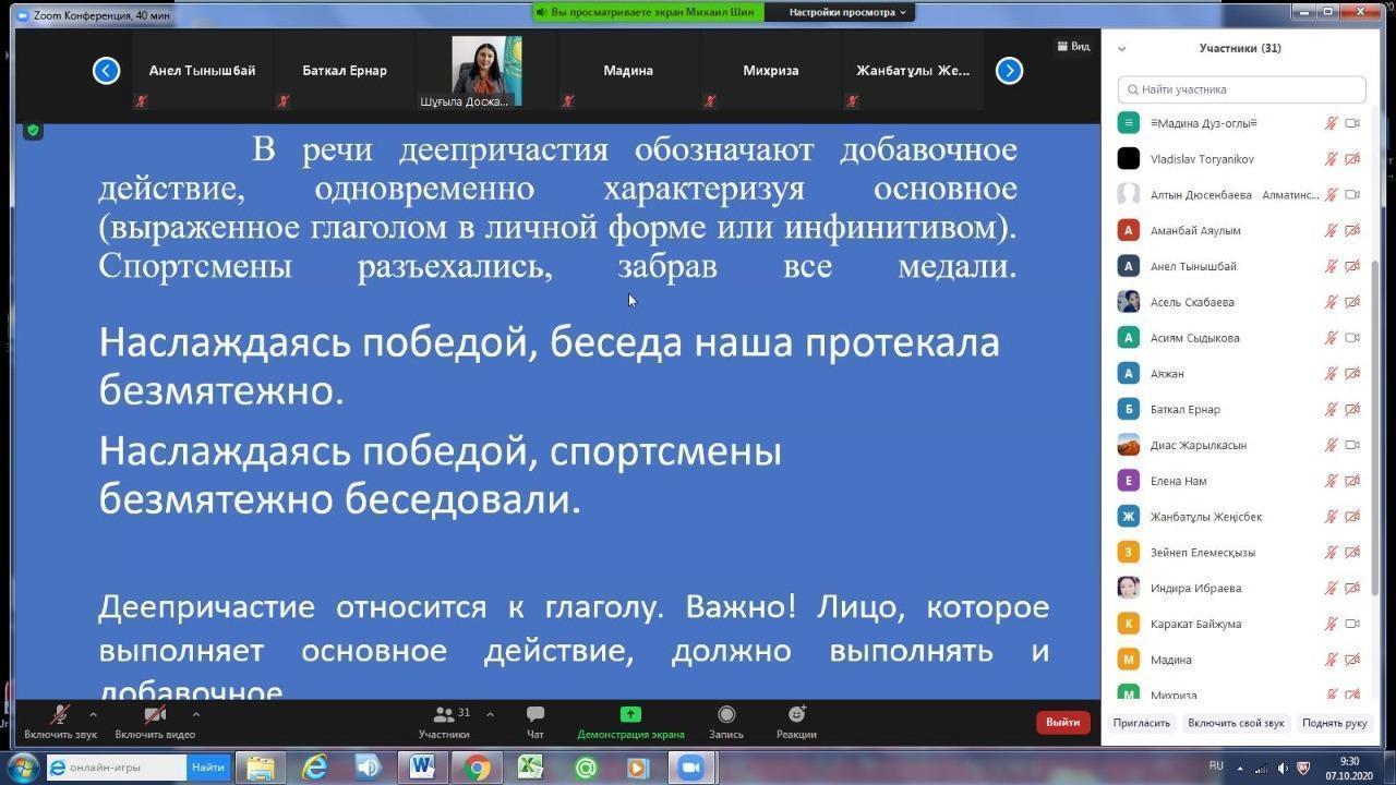 Әр сабақта 21-33 қатысушыға дейін конференцияға кіріп қатысты. Ұйымдастырылып отырған сенинар жұмысы қашықтықтан оқыту жағдайында мұғалімдер арасында көптеген қажетті әдіс-тәсілдермен бөлісуге ықпал етуде.