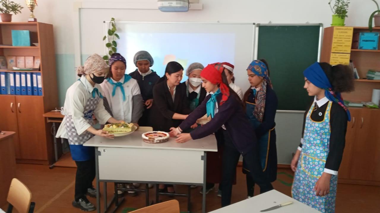 2022 жылғы 20-29 сәүір күндері аралығында «Цифрлық технологияларды пайдалану арқылы эстетикалық пәндері сабақтарын жаңаша ұйымдастыру» тақырыбында эстетикалық пәндерінің он күндігі шеңберінде технология пәнінің мұғалімі Токанова Айсара Кайратовна 6 орыс сыныбының қыздарымен "Кулинарное искусство" тақырыбында ашық сабақ өткізіп, тақырыпты ашу мақсатында бейне ролик көрсетіп миға шабуыл, сабақтың мақсатына жетуде АКТ технологияларын қолданып, шығармашылық тапсырмалар ұсынып, қызықты әдістермен бағалау жүргізіп, практикалық сабақ ұйымдастырды. Сабақта оқушылар белсенділік танытты, бір-бірінің жұмысын бағалап, пікірлерін білдірді. Сабаққа пән мұғалімдері қатысып оң пікір айтты.