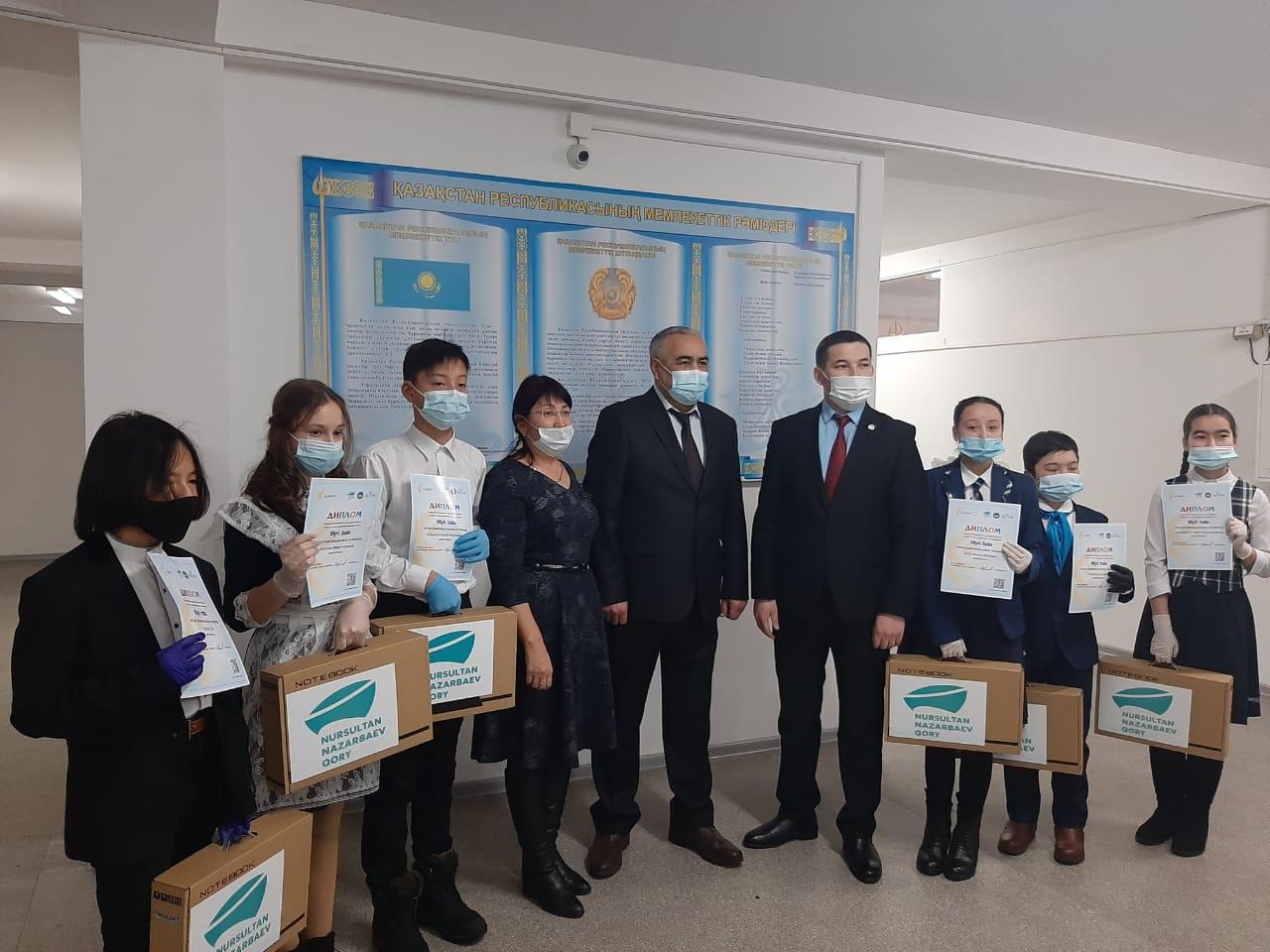 Дарынды жастарды анықтау және қолдау жөніндегі Елбасының «Ел Үміті» бастамасы аясында ауыл мектептері оқушыларына арналған «Мың бала» бірінші Ұлттық олимпиадасының қорытындысы бойынша жеңімпаз атанған Р.Қошқарбаев атындағы ОМ оқушысы Амина Огайға «Елбасы Нұрсұлтан Назарбаев қорынан» сыйлыққа ноутбук берілді!