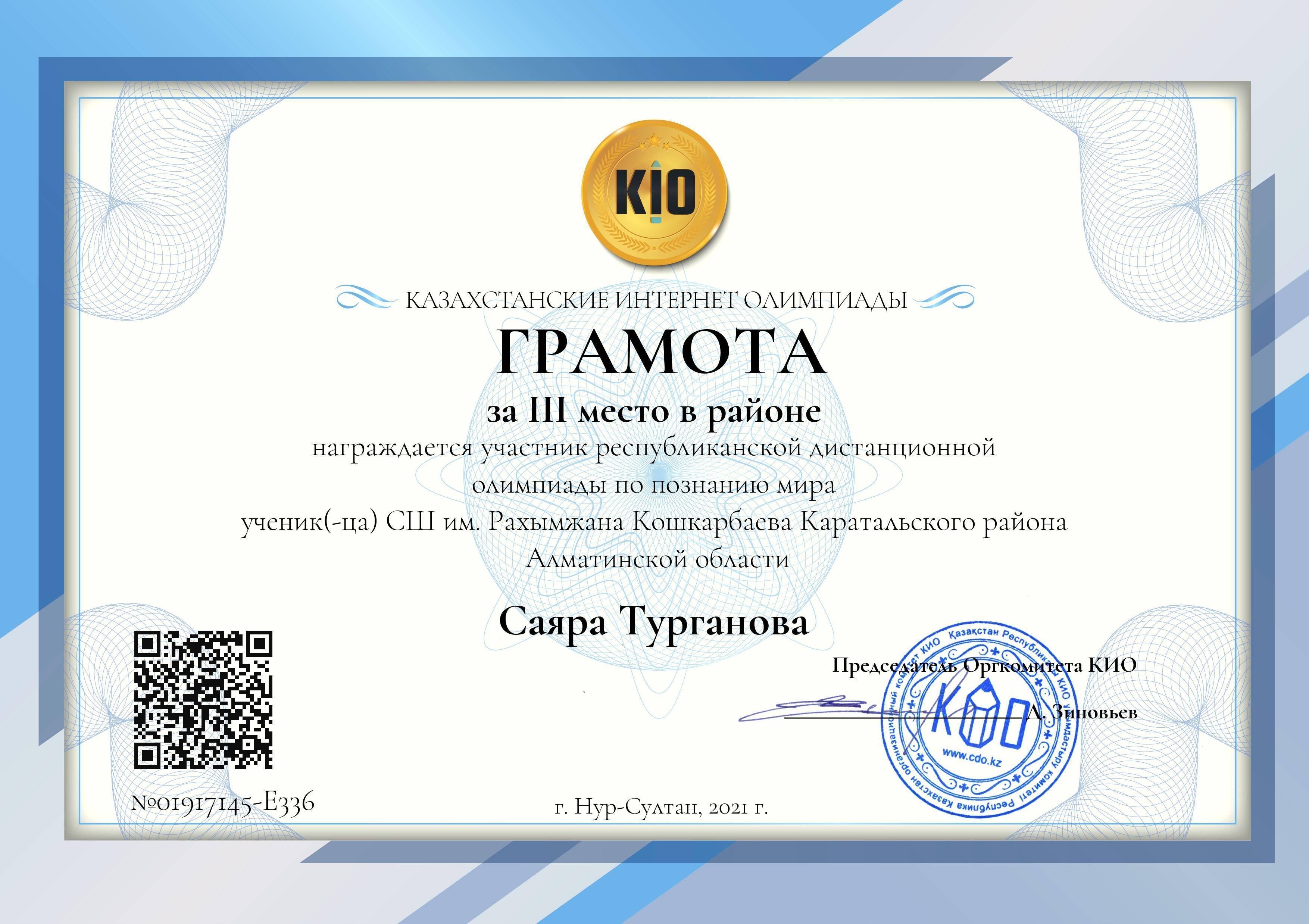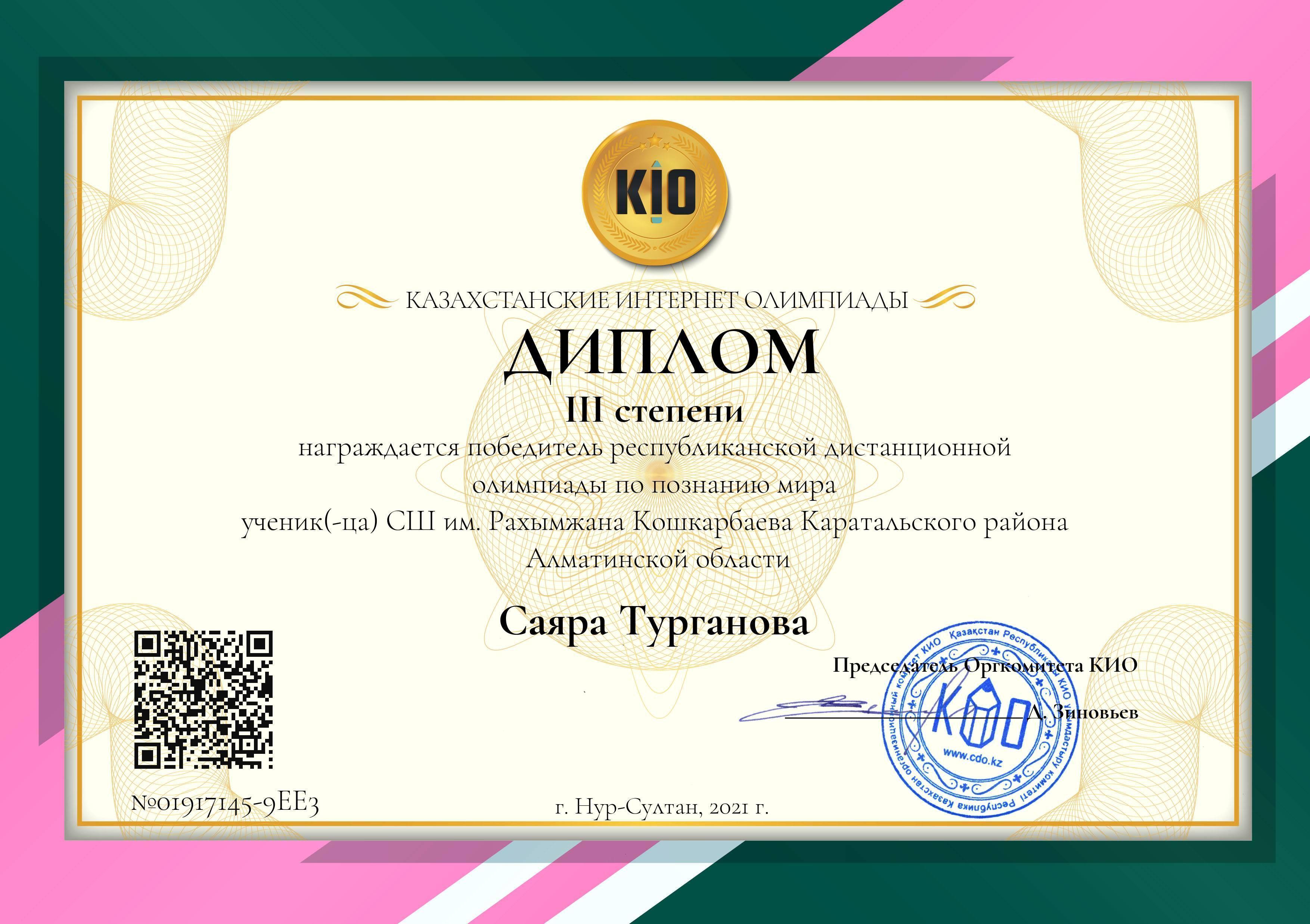Турганова Саяра 3 место,