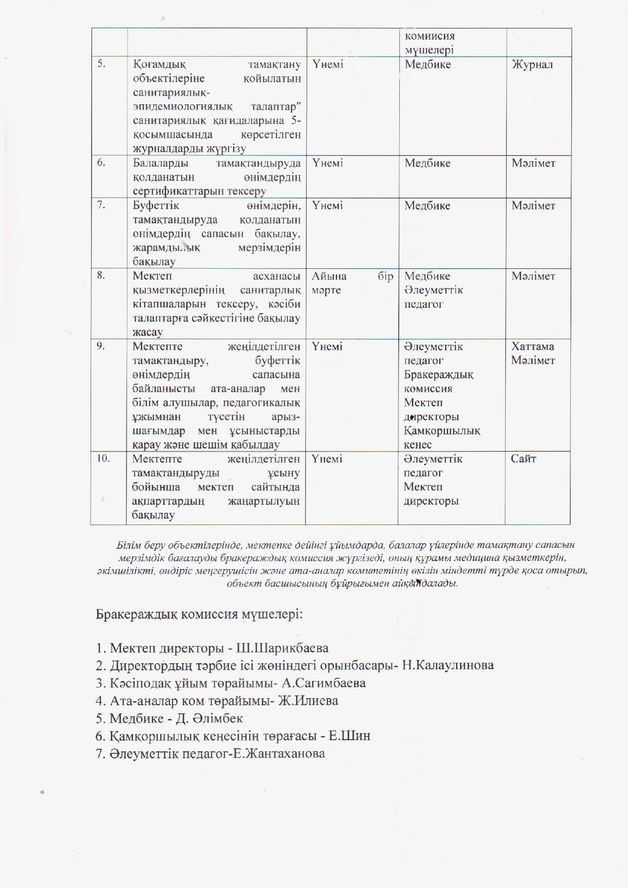 Бракераждық комиссияның жұмыс жоспары » Қошқарбаев атындағы орта мектеп