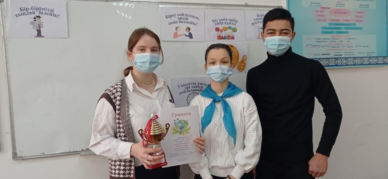 «Жасыл әлем». The president школьного Парламента Наурызбек Мадина со своей командой наградили победителей.