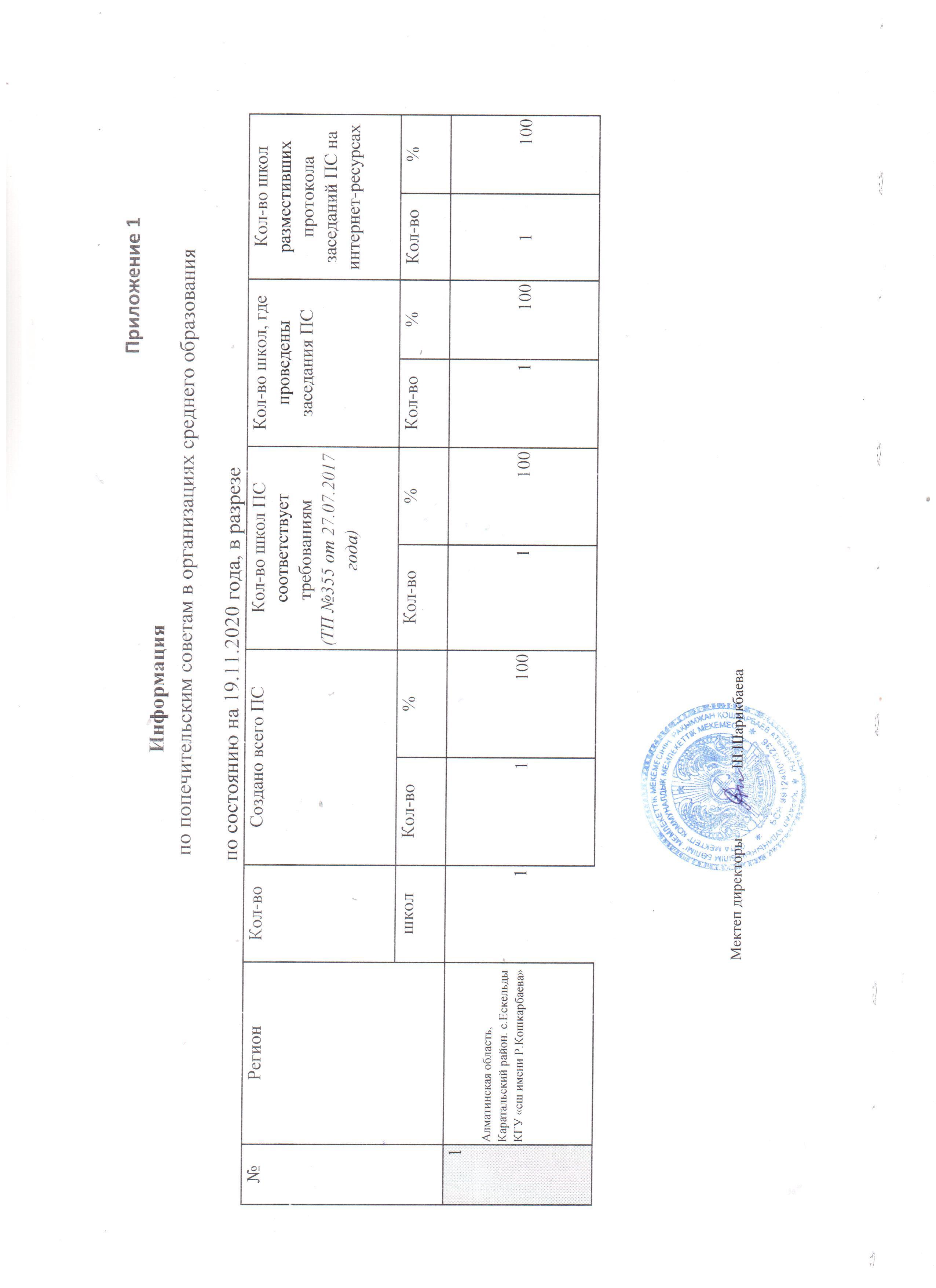 Информация о составе ПС » Қошқарбаев атындағы орта мектеп