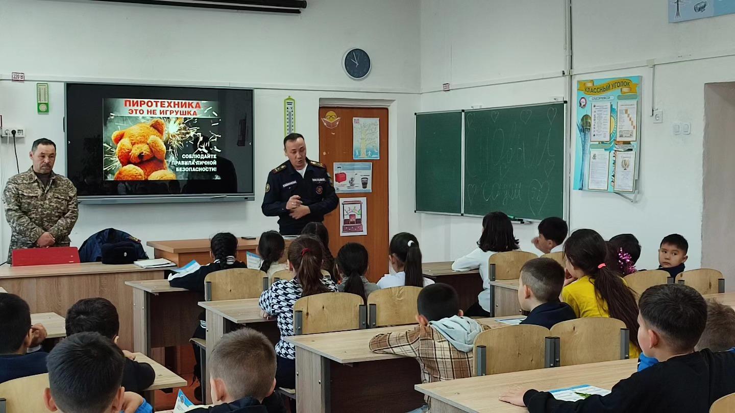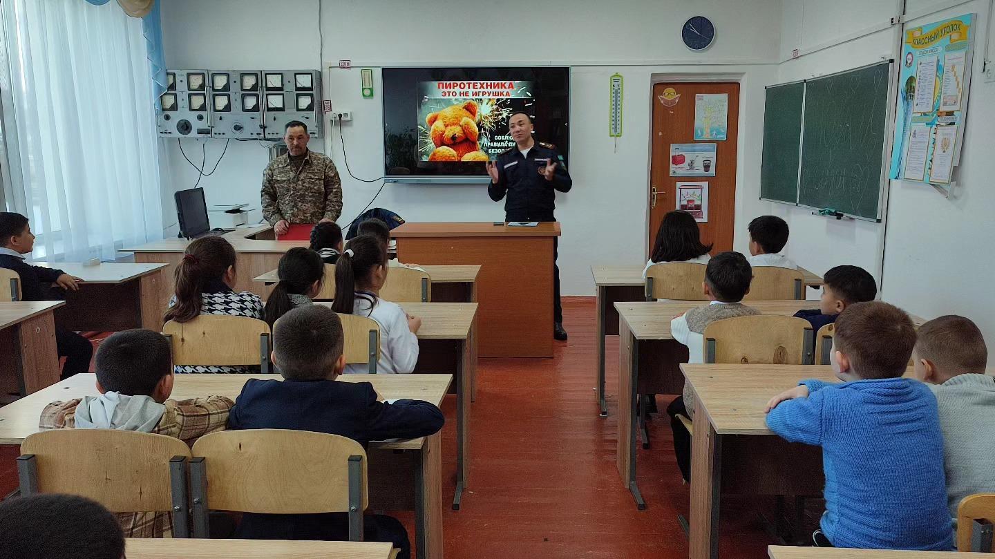 28 December 2023 0 1 2 3 4 5 Төтенше жағдай бөлімі мамандарының қатысуымен өткізілген қауіпсіздік сабақтары Төтенше жағдай бөлімі мамандарының қатысуымен өткізілген қауіпсіздік сабақтары
