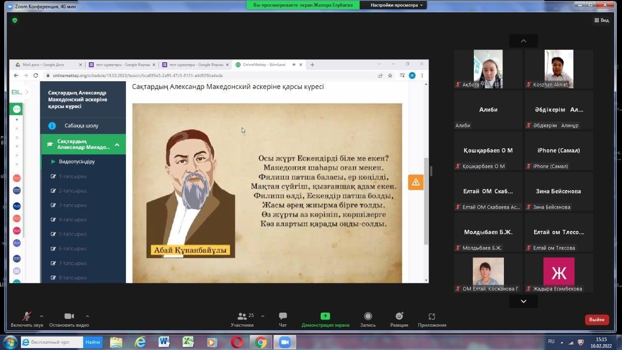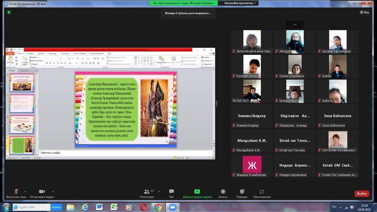 Р.Қошқарбаев атындағы Ресурстық орталық және жетекші мектебінің магниттік және серіктес Лермонтов атындағы ОМ, Елтай МДШО бар ОМ, Көкдала, Үшкөмей орталау мектептерінің жылдық жұмыс жоспары шеңберінде қысқы сессия жұмысы ұйымдастырылып, Елтай МДШО бар орта мектебінің пән мұғалімдері ЗУМ платформасында ашық іс- шаралар өткізді. Қыдырбаева Г. К. мұғалімдерге арналған "Оқушылардың оқу белсенділіктерін арттыру үшін қандай бағалау түрлерін қолдануға болады?" атты коучинг, Қуантханова Ә. Қ. «Адам қаңқасының құрылысы. Тірек қимыл жүйесінің маңызы мен қызметі» тақырыбында 8 сыныпта биология сабағын, Cултанбекова Ж.Ж. ағылшын тілінен 4 сыныпта «Show and ice» тақырыбында ашық сабақ, Елубаева Ж. А. 5 сынып оқушыларымен Қазақстан тарихынан «Александр Македонский әскеріне қарсы күресі» тақырыбында ашық сабақ өткізді. Преподаватели балаларға тиімді оқу платформалар арқылы бейне роликтер, тапсырмалар ұсынып, пәнаралық байланысты да жүзеге асыра алды, Оқушылар белсенді жұмыс жасап білімдерін ортаға салып, ойларын білдірді. Сабақтар дұрыс құрастырылып, тапсырмалар танымды, дамытушылық бағытта қарастырылды. Қатысқан мұғалімдер сындарлы кері байланыс беріп, алғыстарын білдірді.