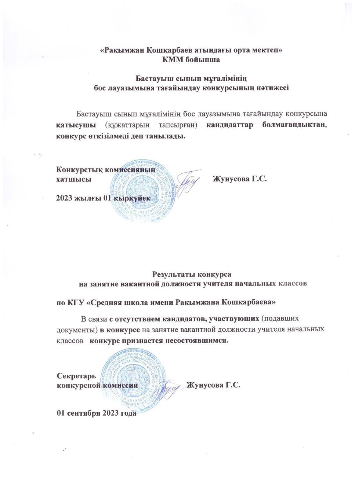 Конкурс өткізілмеді ( бастауыш сынып) » Қошқарбаев атындағы орта мектеп